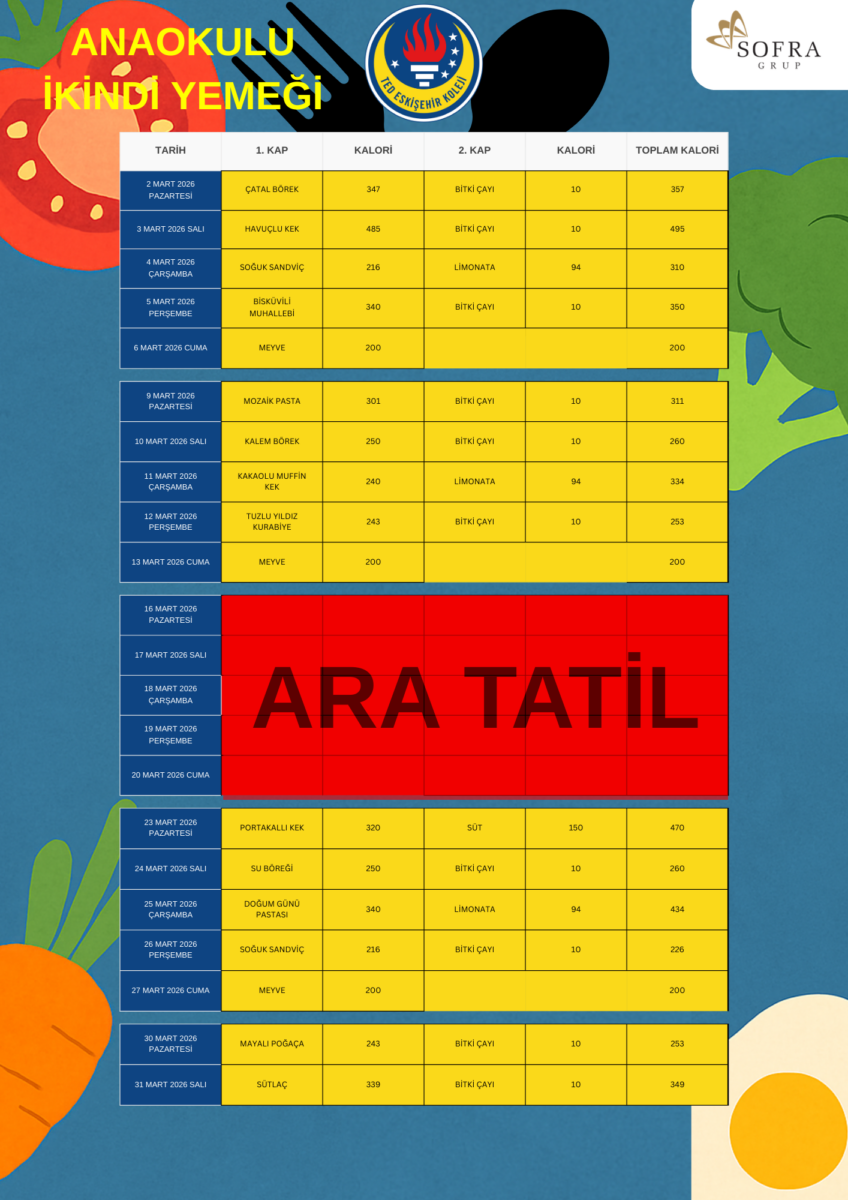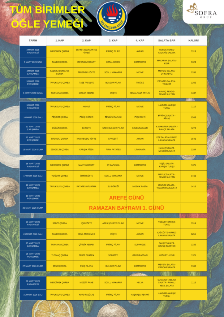 Yemek hizmetleri sağlayanı Pusula gruba ait Scolarest fir-ması elliyi aşkın ülkede eğitim kurumlarında uyguladığı “Ye, Öğren, Yaşa” programıını okumulumuzda da eş zamanlı olarak uygulamaktadır.