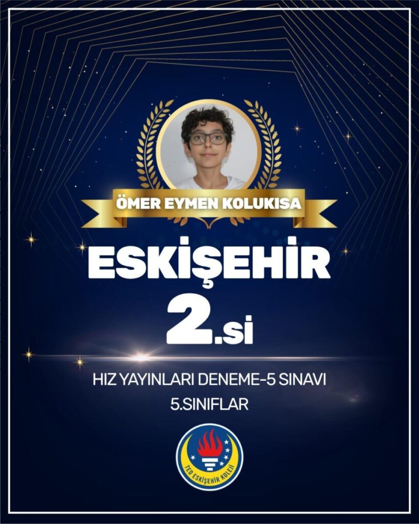 - sınıflar Hız Yayınları Deneme-5 sınavında elde ettiği derece ile bizleri gururlandıran öğrencimiz Ömer Eymen Kolukısa’yı tebrik ediyoruz.